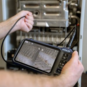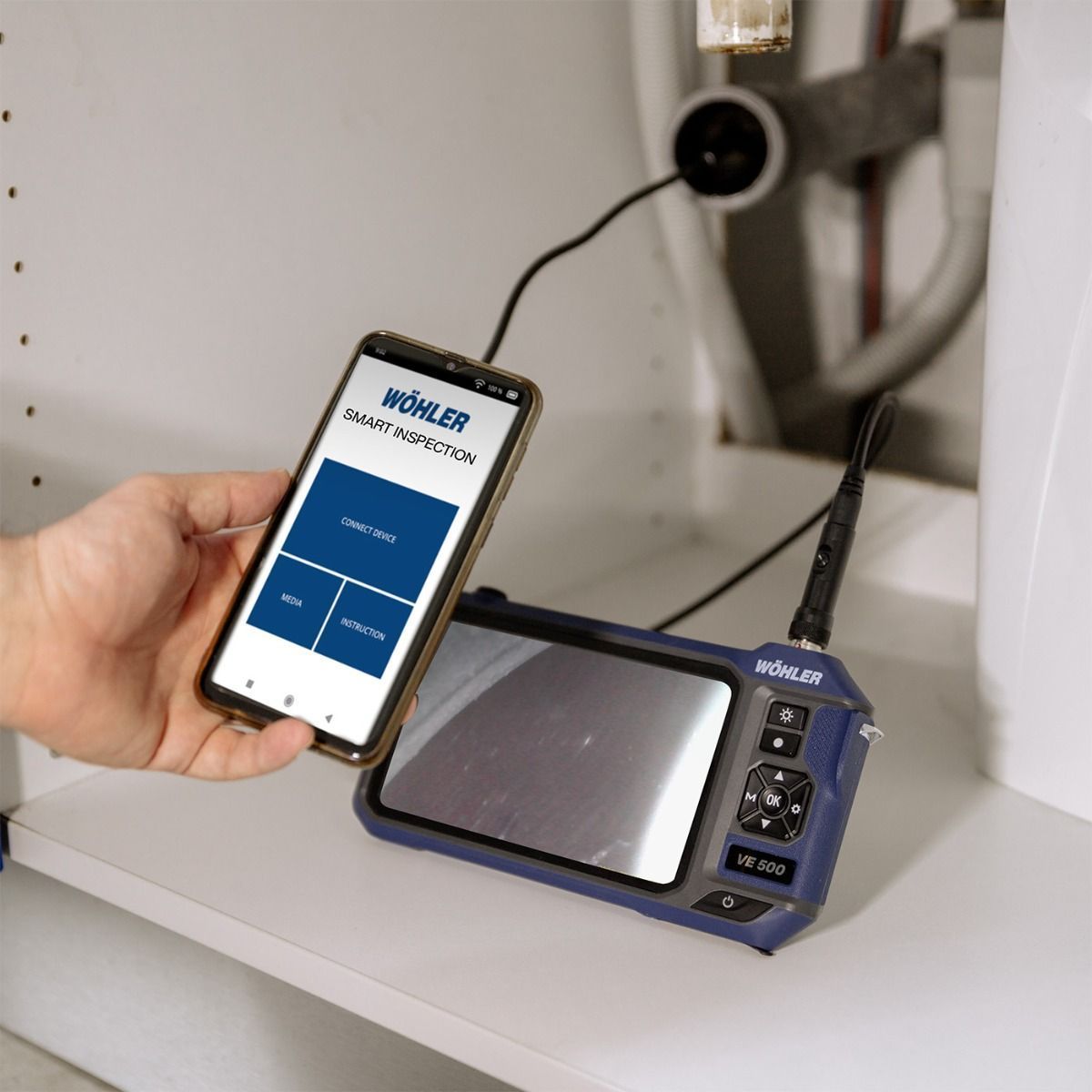 With the Wöhler Smart Inspection App, you can use your smartphone or tablet as a second display. The Wöhler VE 500 HD video endoscope transmits all image and video data there via Wi-Fi. Your colleague or customer can then follow the entire inspection, even if they are further away. The app makes it easy to document and send images, videos and damage reports.