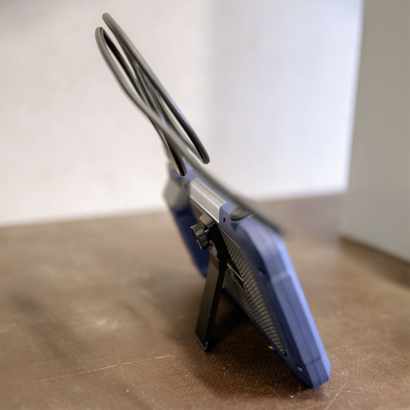 The large-format colour monitor delivers razor-sharp images, while your image rotation function always provides the optimum perspective. The split-screen mode allows you to display both camera images of the combination probe simultaneously to capture everything at a glance. The supplied stand ensures that the monitor is conveniently positioned so that your hands remain free during the inspection.