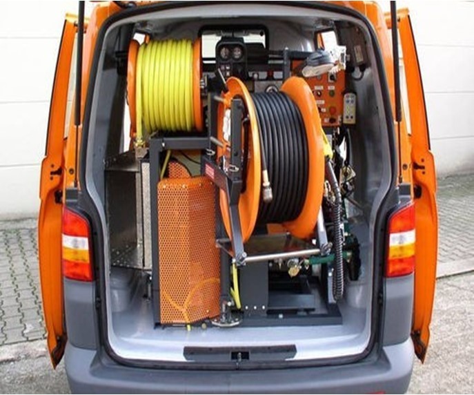 Αποφρακτικό μηχάνημα LESITOKOW με αυτόνομο moter 70lt/min – 130bar με ασύρματο κοντρόλ και αναδιπλούμενη καρούλα.