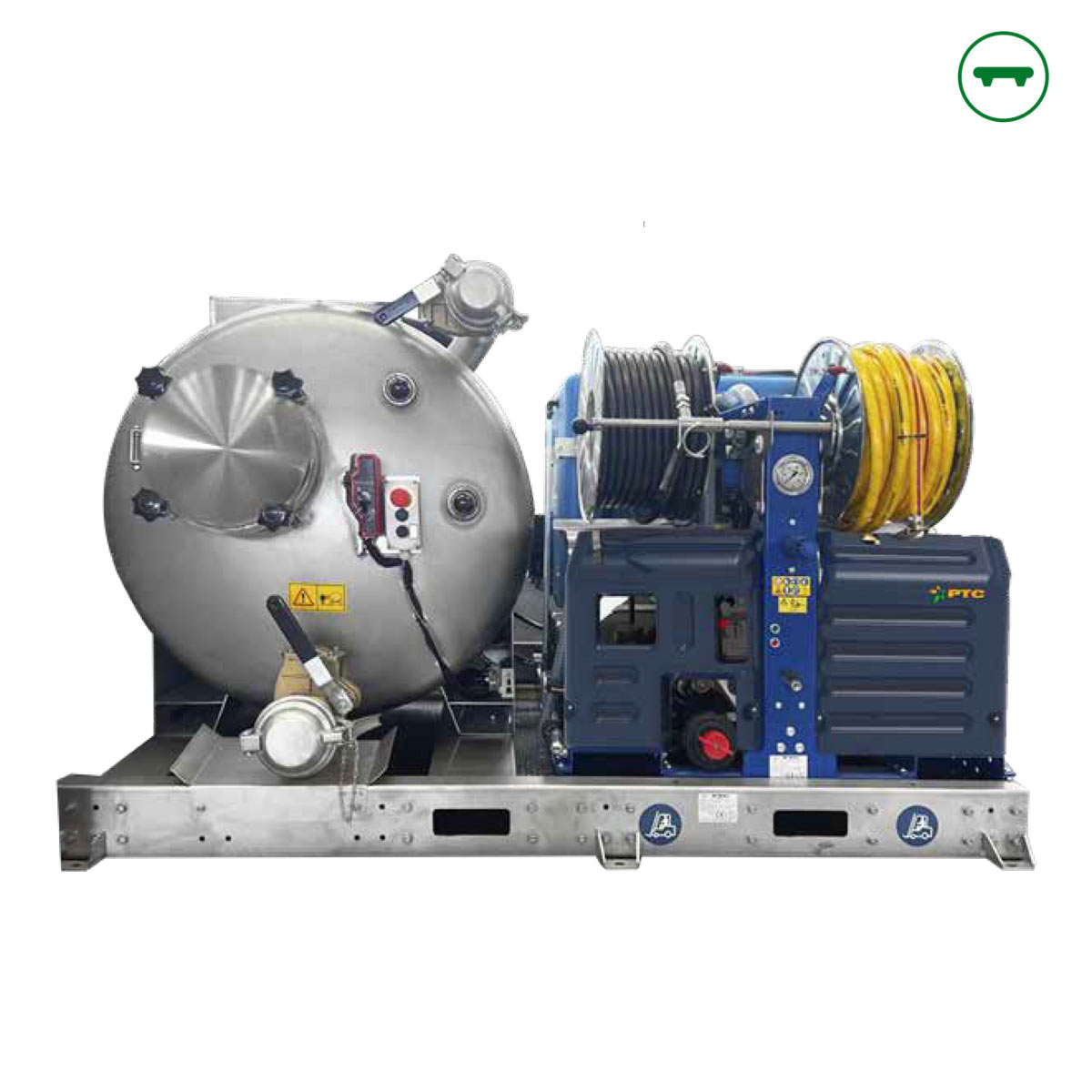 Δεξαμενή λυμάτων 1000 l από ανοξείδωτο χάλυβα, βαλβίδα υπερχείλισης, βαλβίδα ασφαλείας +0,5 bar, ένδειξη στάθμης διπλής όψης, χειροκίνητη βαλβίδα φόρτωσης/εκκένωσης